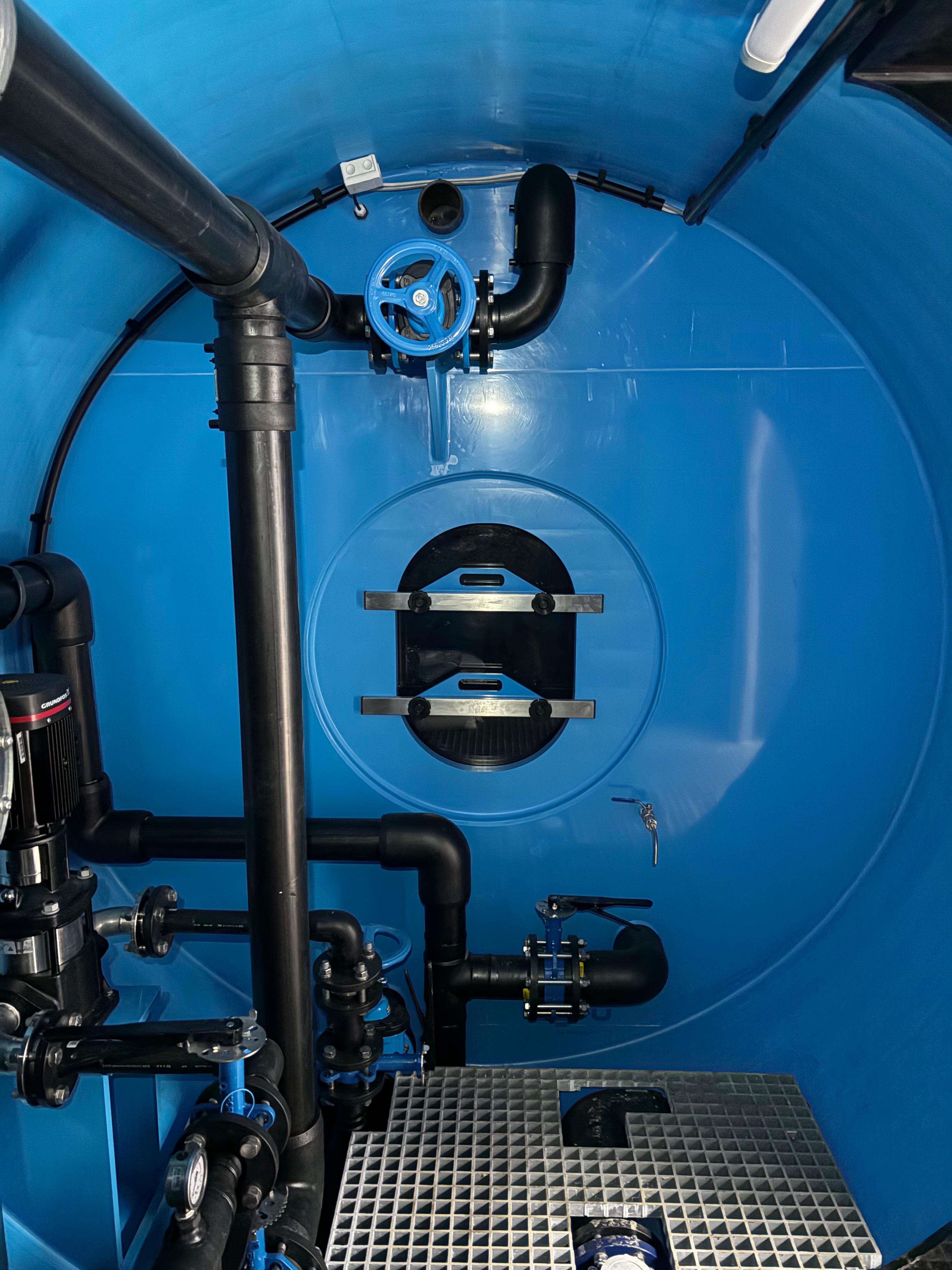Ergänzt wird die Anlage durch eine Entsäuerungsanlage, welche die Wasserqualität stabilisiert und Korrosion im Leitungsnetz reduziert. Eine Edelstahleingangstür sorgt für eine hygienische, langlebige und wartungsfreundliche Zugangslösung.