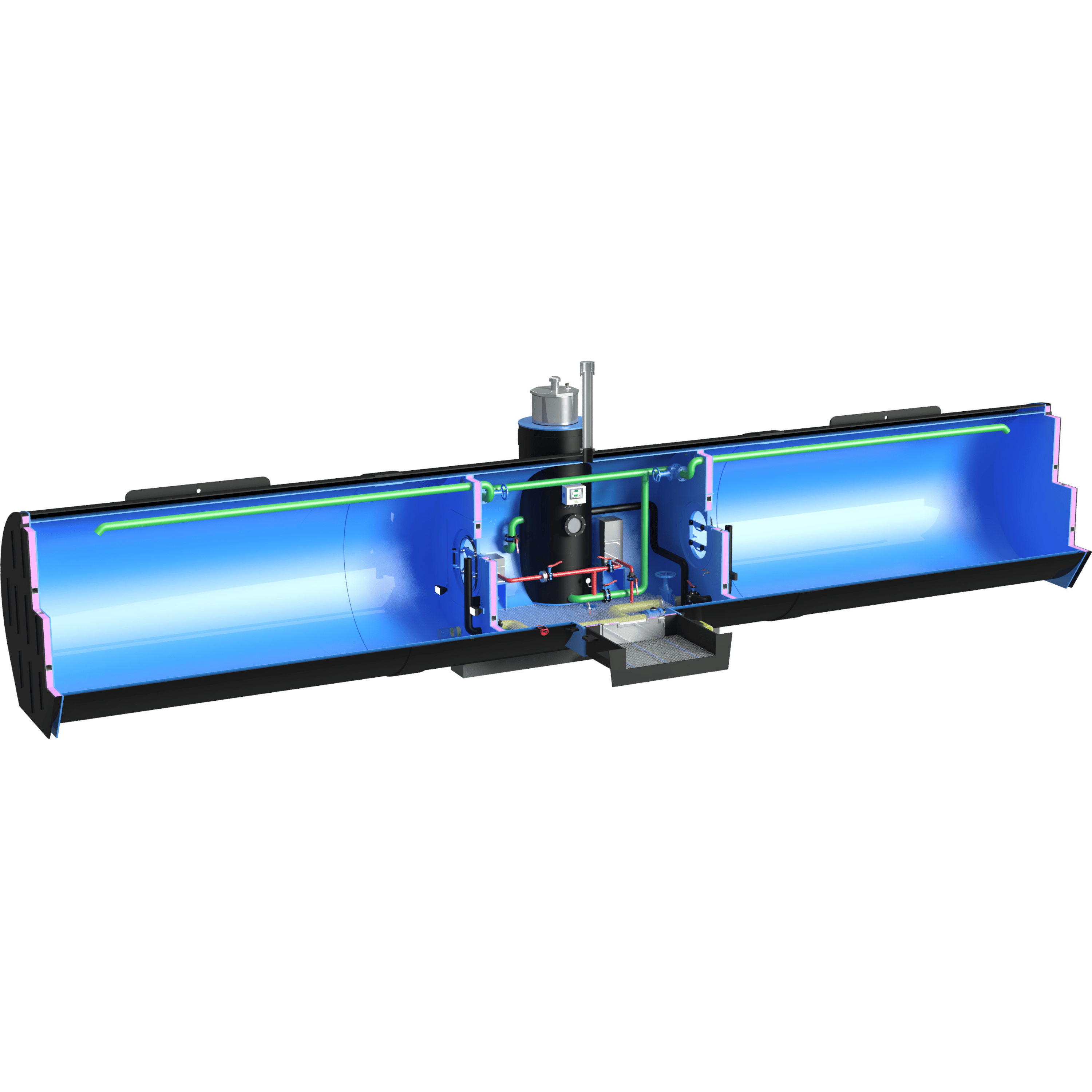 Die Speicher verfügen über die ÖVGW-Zulassung W 1.614 und erfüllen damit alle relevanten Anforderungen der Trinkwasserversorgung. Gefertigt sind die Behälter aus monolithischen, doppelwandigen PE-HD Wickelrohren.